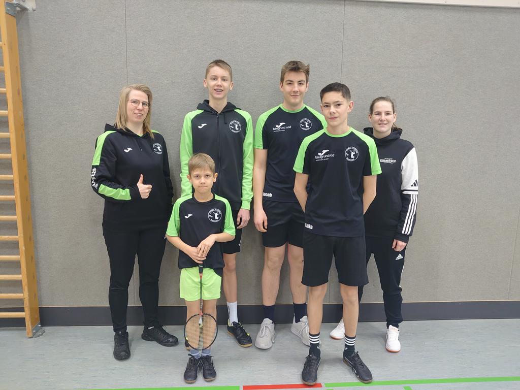 Auf dem Gruppenbild die Turnierteilnehmer der TG (v.l.): Sarah Schmid (Trainerin), Thorin Klingele, Tim Hofer, Jacob Bohner, Luka Jovanovski und Ramona Schmid (Trainerin)