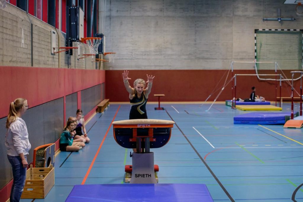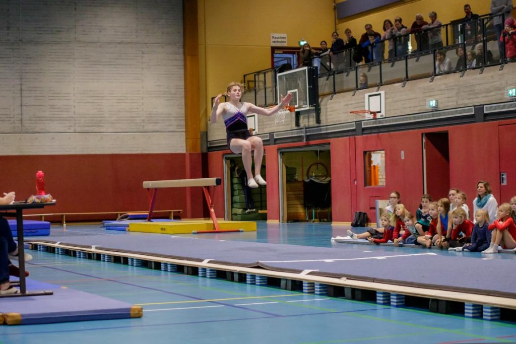 Sieben Mädchen turnten in der D-Jugend. In den letzten Wochen wurden fleißig die neuen Übungen der P Stufen geübt. Am Boden konnten alle Mädchen des Jahrgangs 2006-07 die höhere Übung P7 mit sehr guten Wertungen abrufen. Ebenso am Sprungtisch mit einem Handstandüberschlag über 1,20 m Höhe. Auch am Balken turnten einige die schwerere Übung in der sie ein Rad auf dem 10 cm schmalen Balken zeigten. Siegerin wurde Michelle Weber gefolgt von Zanele Sickinger und Marilena Blaut. Matthieu Barbeau setzte sich in der D-Jugend vor Matti Salzbrunn durch. Bei den E-Jugendlichen gewann Gero Reisch vor Dejan Hepp. Elf Turnerinnen kämpften um den Titel in der E Jugend. Alle haben seit letztem Jahr viel dazugelernt und konnten schöne Übungen präsentieren. Gewonnen hat Yvonne Weber vor Lara Heiß und Ida Leins.