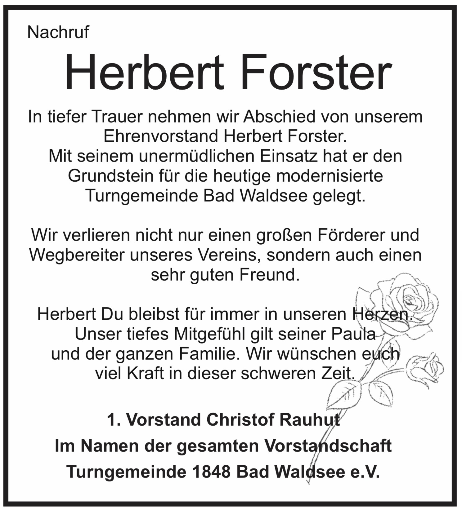 Wir trauern um unserern Ehernvorstand Herbert Forster
